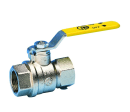 Gaskuglehane med fuldt gennemløb, muffe/muffe. Gult stålhåndtag