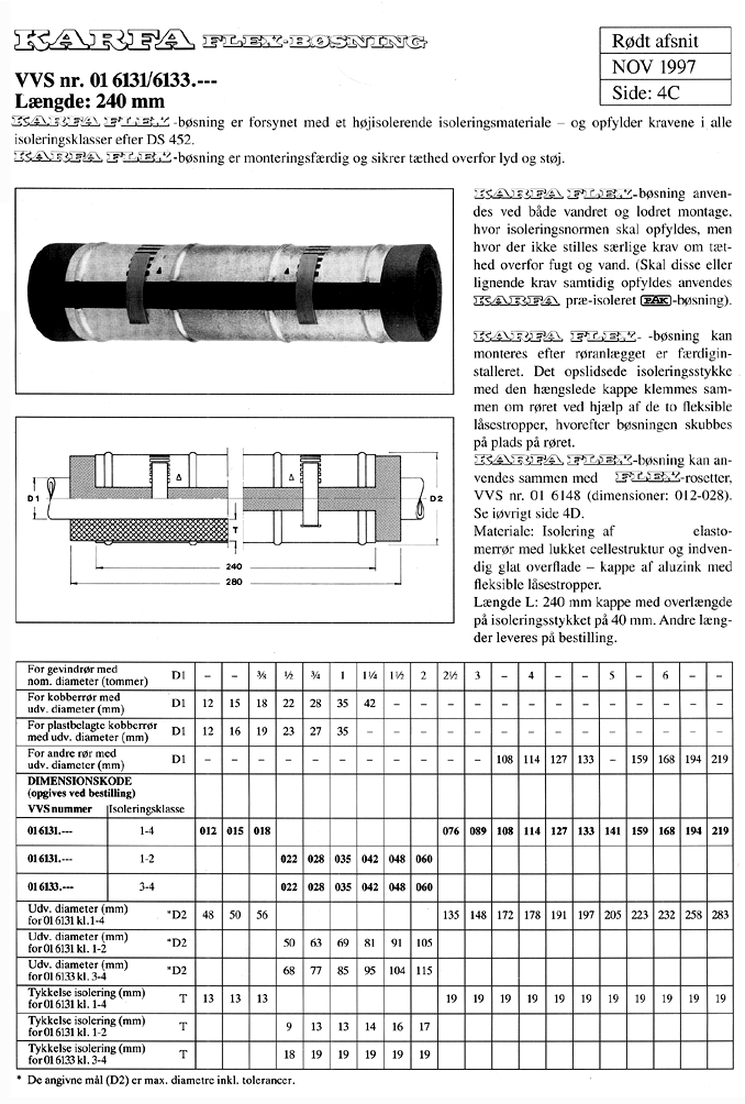 Med isolering af ubrandbart syntetisk gummi og kappe af Aluzink, med fleksible låsestropper.
