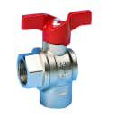 Vinkelkuglehane med fuldt gennemløb, muffe/muffe. Rødt T-greb.