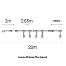 Lyskæden leveres komplet med 20 E27 LED-pærer og 2 ekstra reservepærer, så du altid har en backup ved hånden. Uanset om du ønsker en hyggelig hverdagsstemning eller et festligt lysarrangement, får du her en løsning, der er både praktisk og dekorativ.