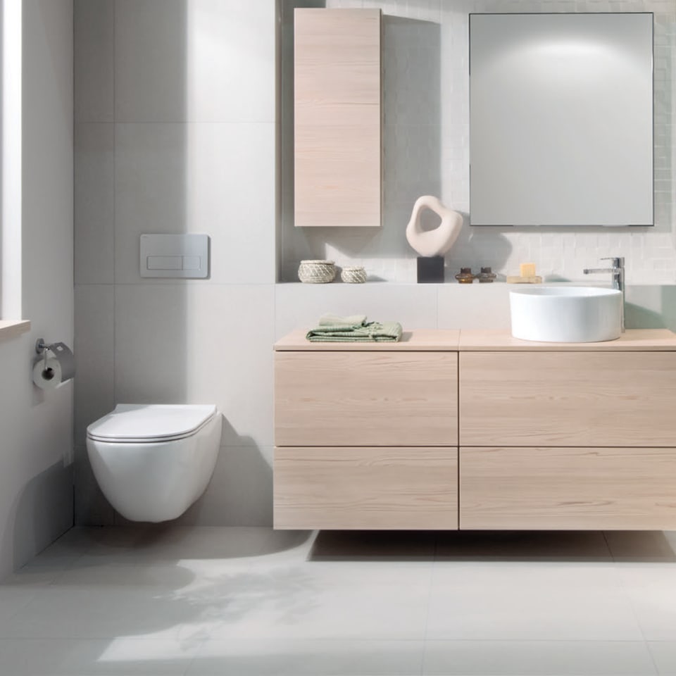 Opgrader badeværelset med væghængte toiletter fra Laufen. Du får moderne design, nem rengøring og høj komfort i hverdagen – en stilren og praktisk løsning, der løfter både udtryk og funktion.