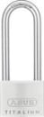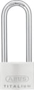 TITALIUM - Fremtidsorienteret sikkerhed med 30 % lavere vægt og samme sikkerhedsniveau som den klassiske messing hængelås. Titalium hængelås i rustfrit stål-look. 80 mm høj bøjle i specialstål med NANO Protect-belægning, som sikrer høj korrosionsbeskyttelse. Begge sider af bøjlen aflåses. Enslukkende gruppe 6512.