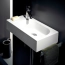 Flot kompakt håndvask fra Alape fremstillet i glaseret stål. Dette materiale, der er karakteristisk for Alape, giver en fascinerende mangfoldighed af former, flader og mål med en enestående præcision. Glaseret stål er et let, men yderst robust materiale. Det kompakte design gør vasken perfekt til det lille badeværelse eller gæstetoilettet.