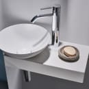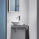 Flot håndvaskløsning fra Alape fremstillet i glaseret stål. Dette materiale, der er karakteristisk for Alape, giver en fascinerende mangfoldighed af former, flader og mål med en enestående præcision. Glaseret stål er et let, men yderst robust materiale. Denne løsning er det perfekte valg til det lille badeværelse.