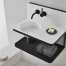 Vaskeenheden har vaskebassin på Ø28 cm i venstre side, og fremstår komplet og samlet med et medfølgende væghængt armatur, som nemt monteres.