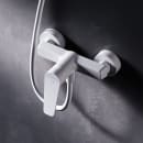 Dette klassiske brusebatteri forener organiske kurver og rene linjer i et stilrent, mat hvidt udtryk. Den lyse overflade tilføjer et let og roligt præg på badeværelset – og med sin slidstærke og ridsefaste finish holder det både udseende og funktion over tid.