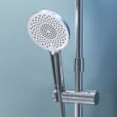 Det smukke kromfarvede brusesystem kombinerer organiske former og lige linjer, og fremstår i et stilrent og diskret design.