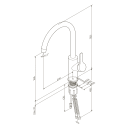Køkkenvandhanen er fremstillet i forkromet messing, som efterfølgende har fået en særligt slidstærk overfladebehandling, der gør armaturet nemmere at rengøre og bibeholder det flotte blanke udseende år efter år.