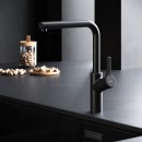 AM.PM X-Joy S er et køkkenarmatur designet med fokus på både form og funktion. Det rene, strømlinede udtryk passer perfekt ind i de fleste køkkener, mens den drejelige tud giver dig større frihed, når du skyller grøntsager, fylder store gryder eller rengør vasken. Her er der tænkt på det hele – og lidt til – pakket ind i en mat sort overflade, der kombinerer visuel ro med høj slidstyrke.