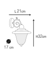 Andromeda 307 udendørs væglampe er en flot og robust udendørs væglampe fremstillet i støbt messing, designet til at modstå barske miljøer, herunder kystnære områder. Væglampen har en højde på 32 cm og en længde på 21 cm, og er udstyret med mat staldglas. Væglampen kommer på en dekorativ "delfin" arm.