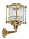 Andromeda 87 udendørs væglampe er en smuk og robust udendørs væglampe fremstillet i ren messing, designet til at modstå barske miljøer, herunder kystnære områder. Væglampen har en diameter på 25 cm og måler 30 cm høj. Den kommer med en lille "tophat" og klart marineglas.