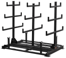 Vange i midten kan løftes op hvorefter vanger i enderne kan ligges ned. Flere reoler kan herefter stables på hinanden, for nem transport og opbevaring.
