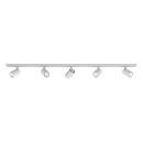 Med sit lange, slanke design og hvide farve, er denne spotlampe skabt til rum, hvor både stemning og funktion tæller. De fem justerbare lampehoveder gør det nemt at styre lyset og skabe den belysning, der passer til dit rum – hvad enten det er over spisebordet, i køkkenet eller langs gangen. Det matte metal trækker ikke opmærksomhed, men tilføjer en rolig dybde, der klæder både moderne og mere klassiske omgivelser.