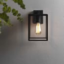 Astro Box lantern er en smuk klassisk udendørs IP23 væglampe i sort lakeret stål med klart glas. Skal bestykkes med en LED pære E27 på max. 12W 230V.