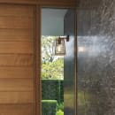 Astro Calvi klassisk udendørs væglampe med IP23. I antik messing og lakeret rustfri stål med klart glas. Bruger én E27 LED pære på maks 12W.