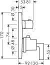 På Axor Citterio armaturet til indbygning er armaturkroppen placeret inde i væggen, så kun betjeningsgrebet og rosetten er synlig. Det skaber et minimalistisk udtryk i bruseren uden overflødigheder. Indbygningsarmaturet med termostat har sikkerhedsspærre ved 38°C og 2 udtag, så der kan tilkobles både hoved- og håndbruser.
