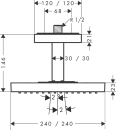 Den store, kvadratiske hovedbruser giver lækkerblød og luftfyldig bruseregn med RainAir brusestrålen, der også har vandsparende funktion (EcoSmart). Brusehovedet har Quick Clean, så kalkrester let kan gnides af de fleksible silikonedyser med en finger. I forbindelse med rengøringen kan stråleskiven også tages af.