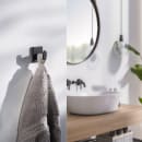 Denne enkle, men yderst stilfulde håndklædekrog i mat sort, er udstyret med en firkantet bagplade, der tilføjer et moderne og stilrent udtryk til ethvert badeværelse. Style den med andre produkter fra Cube-serien for at skabe et fuldendt og harmonisk rum.