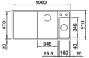 Vasken er beregnet til nedfældning og er venstrevendt, hvilket vil sige, at bassinerne i vasken vender mod venstre side.