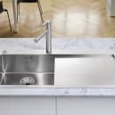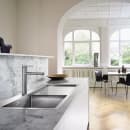 Med vasken som køkkenets naturlige centrum har Blanco i sine udformninger af køkkenvaske sørget for at skabe en perfekt relation mellem design og materiale. Arbejdsfordelingen omkring vasken er blevet praktisk indrettet, mens du er sikret kvalitetsmaterialer og lang levetid.