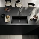 Med en særlig flad kant på kun 1 mm skaber den en næsten usynlig overgang til bordpladen, så vasken ser ud til at være integreret i selve bordet.