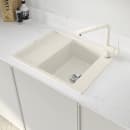 Den rummelige vask, som er stor nok til at vaske større gryder og pander, er fremstillet i silgranit, der er en blanding af 80% granit og 20% akryl, hvilket resulterer i et ualmindeligt robust og holdbart materiale med en tykkelse på 10 mm.