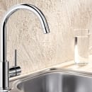 Den høje C-formede tud giver Mida køkkenvandhanen et elegant udseende. Armaturet har en flot forkromet overflade, der kan kombineres med en køkkenvask i rustfrit stål, keramik eller silgranit.