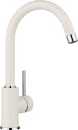 Det smukke og stilrene køkkenarmatur Mida er fremstillet i et moderne design, hvor afrundede og slanke detaljer har været et fokuspunkt. Armaturet fremstår tidløst og elegant, og fuldender på fineste vis dit køkken med den smukke kombination af den blanke krom med den matte råhvide farve.