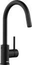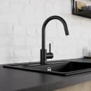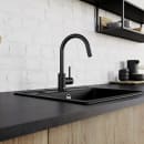 Den høje C-formede tud giver Mida køkkenvandhanen et elegant udseende. Armaturet har en flot mat sort lakering, der kan kombineres med en køkkenvask i rustfrit stål, keramik eller silgranit.