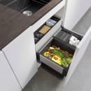 Designet er harmonisk og ekstremt funktionelt med smart, integreret konstruktion, der minimerer ophobning af snavs og giver nem rengøring af alle delene. Affaldsspanden er til montering i skab på skuffens udtræksfront. Systemet er super nemt at montere med det medfølgende skinneudtræk, der gør at spandene følger med ud, når skuffen åbnes.