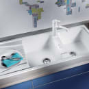 Sona vasken er med sit tidløse og individuelle design som skræddersyet til det moderne køkken. Den firkantede kumme og rene linjer harmonerer smukt med det iøjnefaldende design af vaskefladen