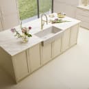 Den rummelige vask, som er stor nok til at vaske større gryder og pander, er fremstillet i silgranit, der er en blanding af 80% granit og 20% akryl, hvilket resulterer i et ualmindeligt robust og holdbart materiale med en tykkelse på 10 mm.