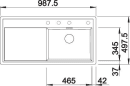 Køkkenvasken er fremstillet i Blancos eget kompositmateriale Silgranit, som består af 80% granit og 20% akryl. En blanding som er enormt holdbart og gør køkkenvasken robust med en godstykkelse på ca. 10 mm.