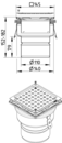 BLÜCHER Domestic-150 justerbar afløb for beton- og klinkegulve, med lodret Ø110mm udløb, uden membranflange