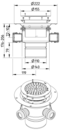Sideindløb: 3 stk. afproppede sideindløb med mulighed for tilslutning af enten Ø32 eller Ø40mm rør. Sideindløbene har en speciel udviklet låsering som sikre mod utilsigtet udtrækning af indløbsrøret. Klemring: Ø155mm fastgjort til afløbet med 6 stk. skruer, egnet for vinyltykkelser 1-2mm.