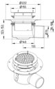 BLÜCHER Domestic-150 justerbar afløb for vinylgulve, med vandret Ø75mm udløb. Kapacitet: 0,9 l/s Udløbsdiameter: 75 mm