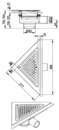 BLÜCHER Waterline Trekantafløb - justerbar afløb for hjørnemontering i beton- og klinkegulve, med vandret Ø50mm udløb. Lav model med membranflange.