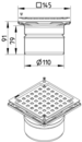 BLÜCHER Domestic-150 afløb for beton- og klinkegulve, med lodret Ø110mm udløb, uden membranflange Kapacitet: 0,9 l/s Udløbsdiameter: 110 mm
