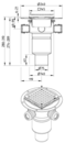 BLÜCHER Domestic-150 justerbar afløb for beton- og klinkegulve, med sideindløb og lodret Ø75mm udløb, med membranflange