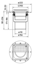 BLÜCHER Domestic-150 justerbar afløb for beton- og klinkegulve, med lodret Ø110mm udløb, med membranklemflange.