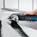 Dette værktøj er beregnet til at klippe PVC, tæpper, pap, læder og stof. Den er kompatibel med alle Bosch Professional 12V batterier og ladere.