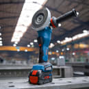 Samme kraft som en 1.500-W-maskine med ledning: vinkelsliber med X-LOCK og PROtection-knap.