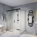 Brasta Milda Soft med sort profil er til dig, der vil kombinere funktionalitet med et markant, men roligt udtryk på badeværelset. Skydedøren glider stille til siden og kræver ingen svingplads – perfekt i rum, hvor pladsen er begrænset, eller hvor du ønsker en mere strømlinet løsning.