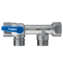 Denne kompakte multiblock fra BWT er en helstøbt bypassventil med kontraventil på afgang og udformet med et vridegreb, der gør håndteringen nem og enkel. Den er fremstillet i eloxeret messing og godkendt til drikkevand. Ventilen er velegnet til alle typer af installationer der kræver et separat drikkevandsgodkendt bypass, eksempelvis osmoseanlæg, blødgøringsanlæg og filtre. Ventilen har 2 indstillinger, en vertikal position, der gør at drikkevandet ledes over blødgøringsanlæg og en horisontal position, der gør at drikkevandet ledes udenom blødgøringsanlægget og direkte ind i huset.