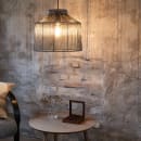 Capanna pendel fra Markslöjd. Base og skærm i antik messing. 1,4m sort tekstilkabel. Monteres med krog. 1xE27, max 40W. Lyskilde medfølger ikke.