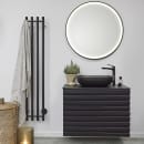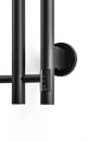 Denne håndklædetørrer har en smuk overflade i mat sort, hvilket giver et moderne og enkelt udtryk.