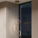 - Tre svævende lysringe i børstet messing for et varm og elegant look