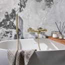 Dette en-grebs kararmatur fra Cassøe i børstet messing forener æstetik med funktionalitet. Den indbyggede termostat sikrer dig en jævn og behagelig vandtemperatur under hele dit bad.
