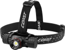 Ultra View Flood Beam – bred belysning til store arbejdsområder. BULLS-EYE™ Spot Beam – fokuseret stråle med rækkevidde op til 180 m. 5 lysindstillinger (Mellem, høj, lav, MoonGlow (batteribesparende) samt COAST’s mega-bright Turbo-Mode). Mega-bright Turbo-Mode tilstand giver med et enkelt langt tryk et ekstremt spotlys på 2700 lumen og en lyskegle på op til 295 m. Lysstyrken på XPH34R kan ikke blot reguleres, men også retningsbestemmes 180 grader, da aluminiumshuset kan tiltes i beslaget.