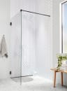 Brusevæggen på 90 cm er udført i 8 mm hærdet sikkerhedsglas og har en mat sort profil, der tilfører et diskret, grafisk præg til indretningen. Den vendbare konstruktion gør det nemt at tilpasse døren til netop dit badeværelse, uanset om du ønsker åbning til højre eller venstre.